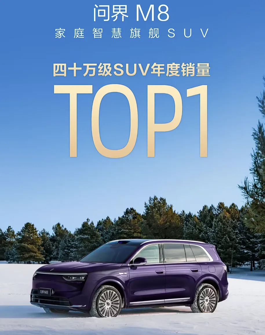 鸿蒙智行宣布,2025年40万级SUV的销量冠军是问界M8;不少网友认为这个“定语”是不是太多了,其实这个冠军的含金量还是比较高的,定语本质上只有两个,一个是40万级,一个是SUV,问界M8在这个价位目前还是没有对手的,同价位也没有很热销的车型。