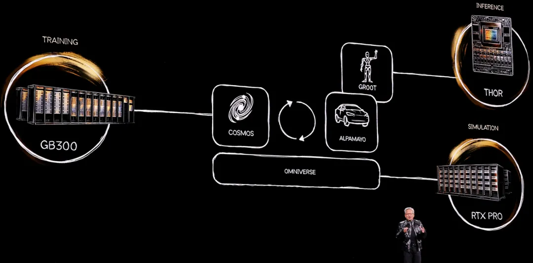 而英伟达这次推的“物理AI”还有配套的Alpamayo、AlpaSim、Drive AGX Thor这些核心技术,正好就冲着这个痛点来的。