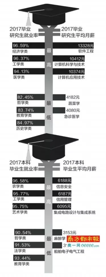 从专业来看, 2017年毕业研究生平均月薪最高的是软件工程,为13328元;本科毕业生平均月薪最高的是信息安全,为6188元。(南方都市报)