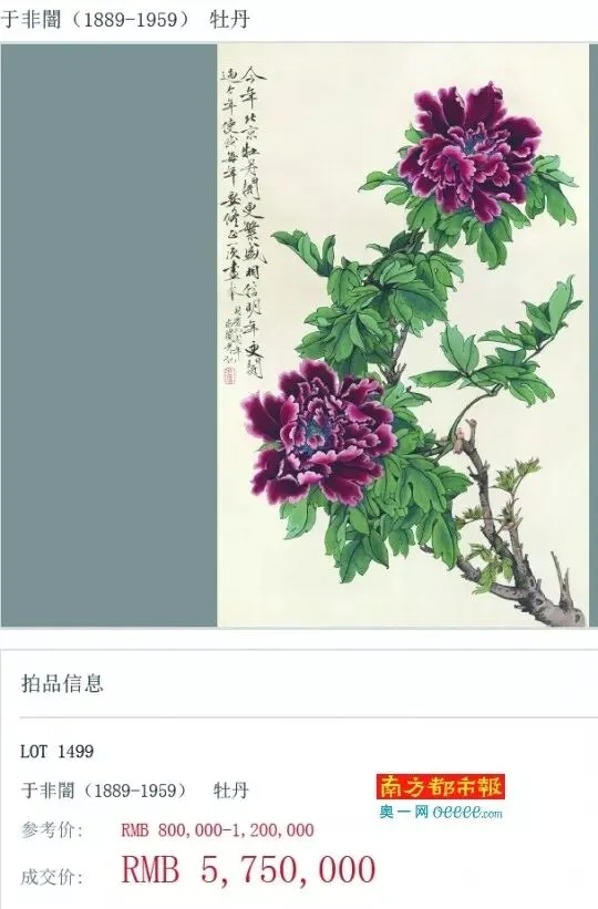 于非闇《富贵图》2013年拍出,成交价575万元。