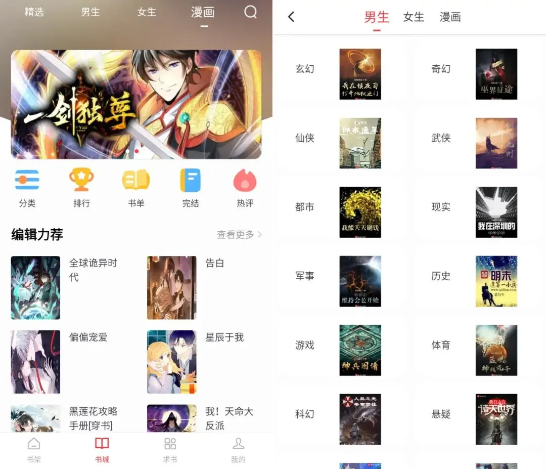 软件特点:内置了小说和漫画,资源丰富,永久免费无广告。
