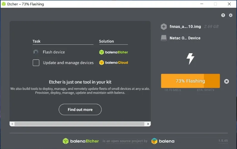 第四步:打开balenaEtcher.exe这个软件,选择我们刚下载的armbian固件(最好解压出img文件)然后选择U盘,注意不要选错,然后点击烧录(这里我用balenaEtcher.exe写盘工具,有其他写盘工具也可以,写盘烧录会格式化U盘,请做好数据备份)