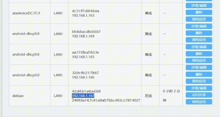第六步:我们回到电脑,等待2分钟左右就可以到路由器后台查看一个叫debian系统IP地址了