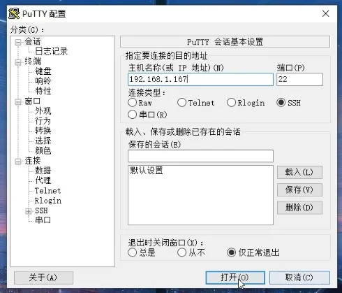 打开putty,输入ip地址,点打开