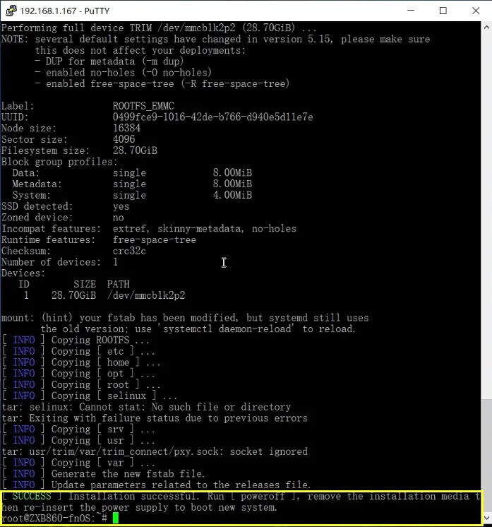 ARM安卓电视盒子刷fnOS(飞牛NAS)详细教程-晶晨S905L3-B移动高清盒子6PRO-中兴B860AV3.2-M