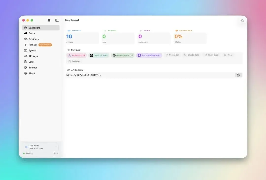 - 一站式管理多个AI编程账户,避免频繁切换- 实时监控AI工具配额使用情况,智能自动切换- 支持Claude、Gemini、OpenAI、Qwen等主流AI平台- 为开发者提供高效的AI编码助手配置体验- 简洁的菜单栏界面,方便快速查看状态和配额- 多语言支持,满足不同用户的使用需求