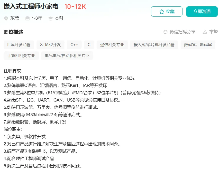 岗位名称:嵌入式工程师小家电