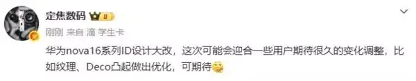 华为nova16系列的ID设计将迎来大改数码博主“定焦数码”爆料称,华为nova16系列# 的ID设计将迎来大改,比如在纹理、Deco凸起等方面做出优化调整。据CNMO了解,华为nova系列每一代新品都在设计与功能上不断创新,最新发布的华为nova 15系列相较于nova 14的温润饰纹设计,更具视觉冲击力。2025年12月安兔兔安卓榜单2025年12月安兔兔安卓旗舰手机性能榜TOP3:1、红魔11 Pro+:4118828分;2、iQOO15:4078562分;3、一加15:4073184分;2025年12月安兔兔安卓手机好评榜TOP3:1、努比亚Z80 Ultra:99.99%;2、OPPO K13 Turbo 5G:98.46%;3、华为Mate70 Pro+:98.46%;两个榜单各有10款机型,其余自己看图吧,看看你的手机入选了吗?荣耀Magic8 Pro Air官宣搭载AI变焦阵列闪光灯荣耀手机官方宣布,荣耀 Magic8 Pro Air 将搭配旗舰同款大底主摄,同时推出行业首个超薄高清潜望长焦,及安卓首个 AI 变焦阵列闪光灯。具体配置信息如下:旗舰同款 Pro 级大底主摄:5000 万像素 | 1/1.3 英寸大底 | f/1.6 超大光圈 | 特殊 IR 旋涂工艺 拦截红外杂光 95% | 防抖等级 CIPA5.0行业首个超薄高清潜望长焦:6400 万像素 | 1/2 英寸大底 | f/2.6 光圈 | 支持 3.2 倍光学变焦 + 最大 100 倍数字变焦 | 防抖等级 CIPA5.0安卓首个 AI 变焦阵列闪光灯:覆盖人像全焦段 | 5 灯阵列结构 | 最大光输出总量达到行业 TOP1 | 最高照度可达 200Lux | 最远 2 米照度可达 50Lux | 精准配比输出电流,四角均匀性可达 80%