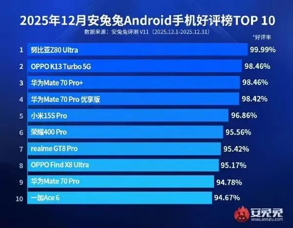 2025年12月安兔兔安卓榜单+华为nova16系列的ID设计将迎来大改/2025全球手机排行榜+荣耀Magic8 Pro Air官宣搭载AI变焦阵列闪光灯