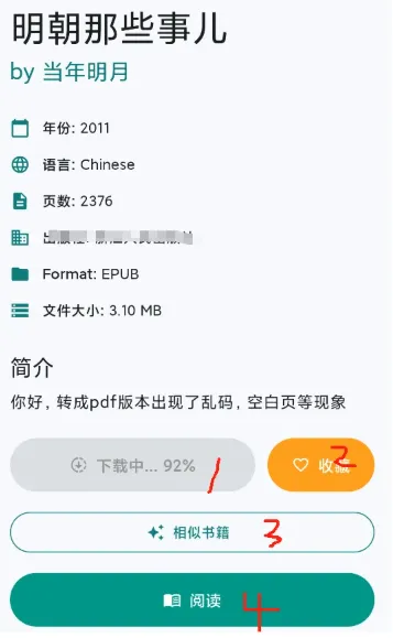 进入具体书籍页面后,你可以看到以下操作选项: