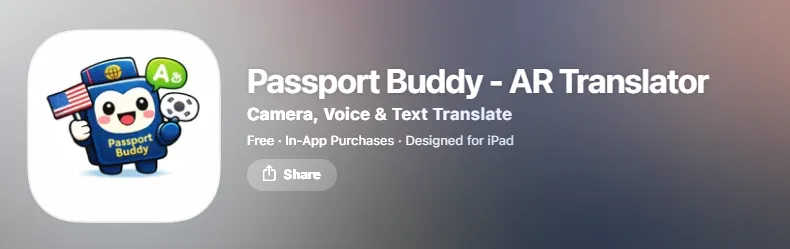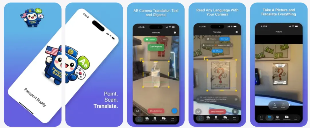 passport buddy ar translator:旅行翻译助手,将相机对准标志、菜单或文件,即可即时看到翻译内容,随时随地与任何人进行自然流畅的对话,输入或贴上任何文字即可获得即时翻译。终身会员兑换码:在公众号后台回复关键词passport