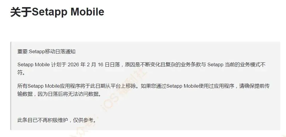 根据 MacPaw 的官方声明,Setapp Mobile 将于当地时间 2 月 16 日 正式停止服务。