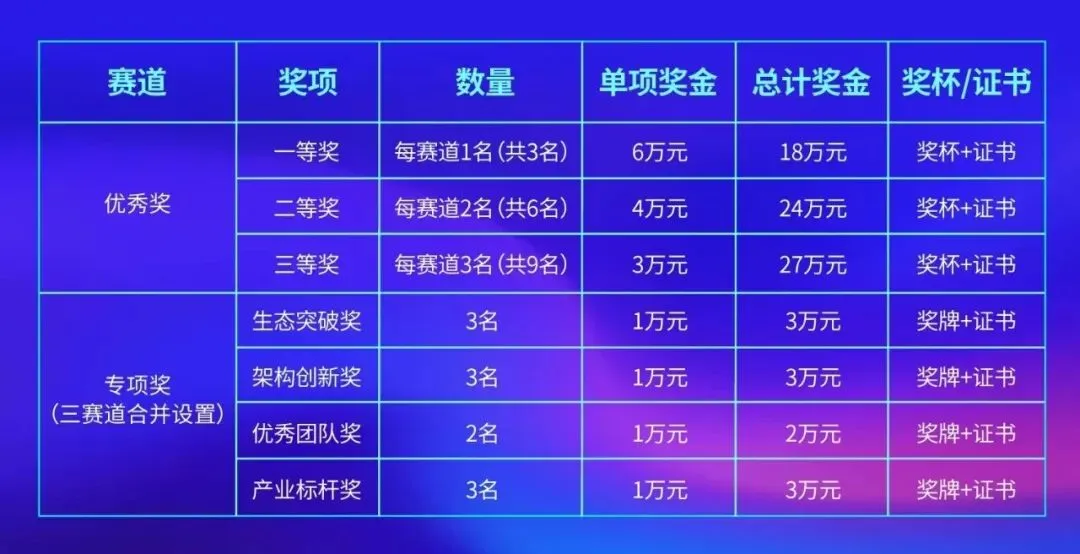 · 每个赛道一等奖1名、二等奖2名、三等奖3名,总奖金池达80万元。