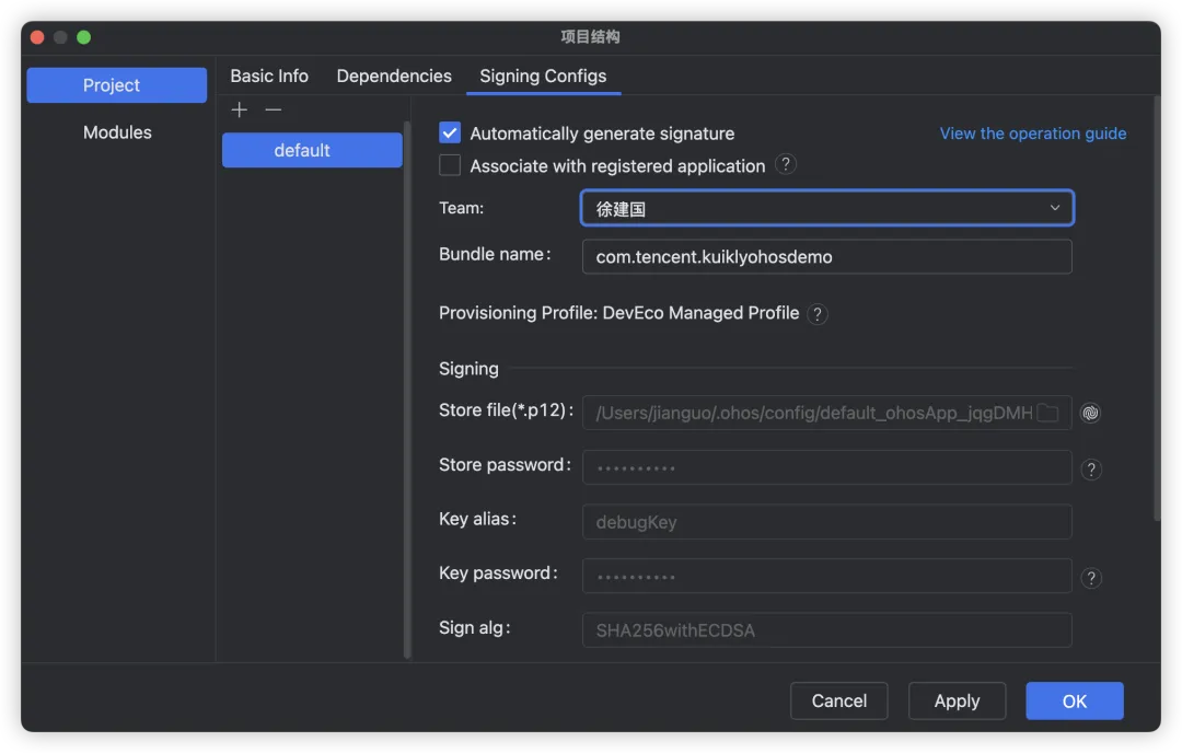 ohosApp 目录下的 .npmrc 文件,点击右上角的 Sync 按钮重新同步在运行 App 之前,必须配置应用签名: