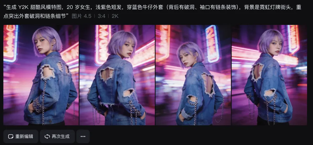 不用学专业术语,不用纠结语法,像和客服聊天一样说需求,AI 就能精准落地。不管是 “国潮风模特穿牛仔外套” 还是 “职场通勤场景戴珍珠项链”,中文指令理解度超 95%,再也不用反复改提示词。