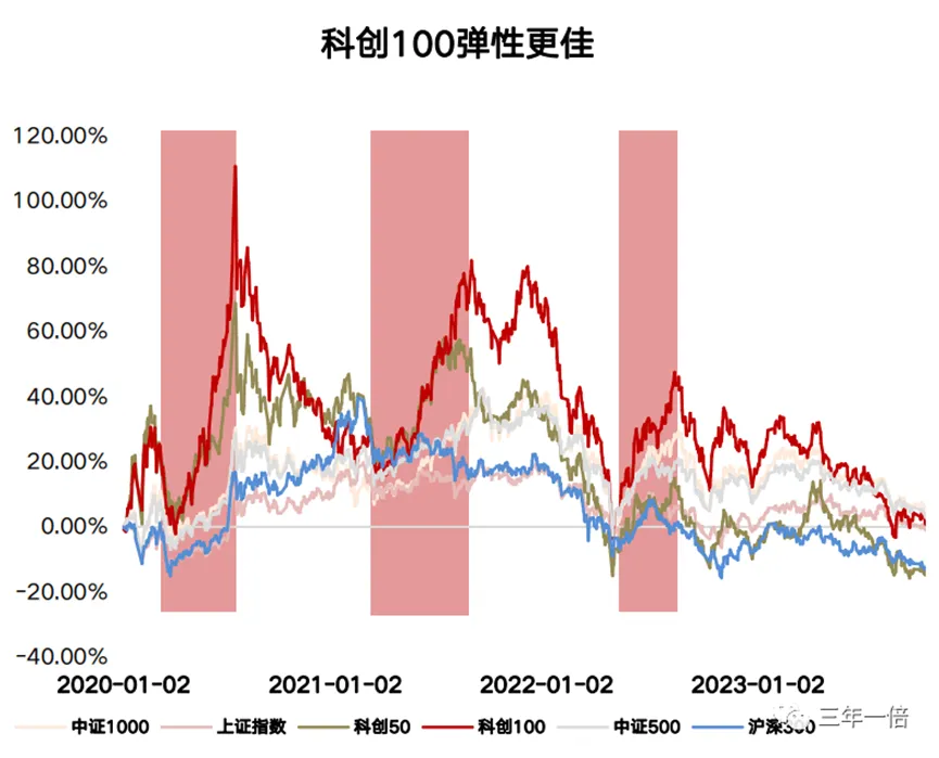 如果接下来启动一波科技上涨行情的话,弹性大的科创100指数或将是直接受益的指数。