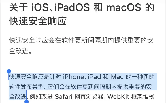 这也是第一次苹果面向普通用户推送的安全响应,其实就是苹果给iOS用户提供的安全补丁,可以修复一些问题