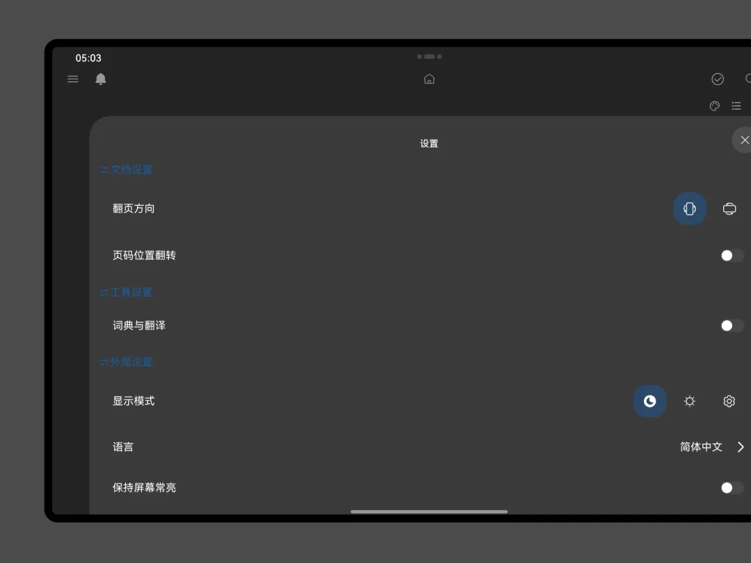 应用设置中新增深色模式切换,更适合夜晚学习使用的模式