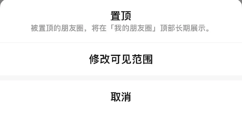 打开你想置顶的朋友圈,点击右上角“...”,底部就有新增的置顶功能,选择后这条朋友圈就会长期显示