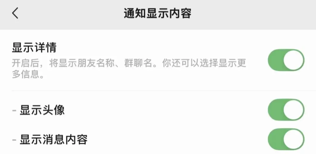 同时,通知显示头像功能持续扩大覆盖范围,果粉们进入设置 - 通知 - 微信未打开时 - 通知显示内容,找到独立的显示头像开关。