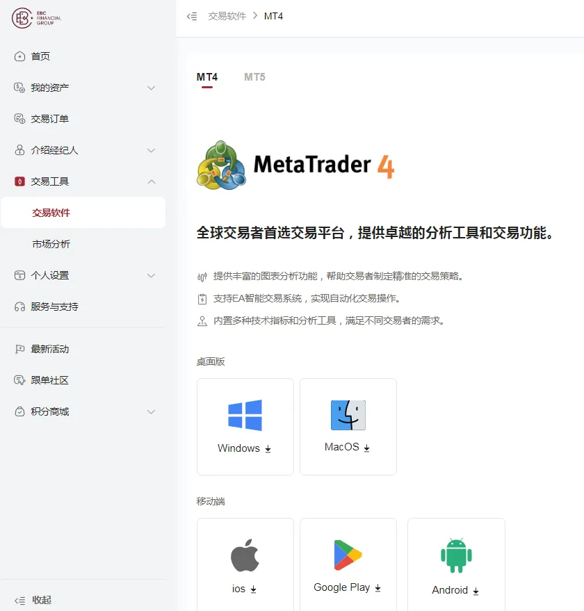 大家也可以通过EBC的官方网站来下载,也是注册链接:https://www.toebc.com/13698