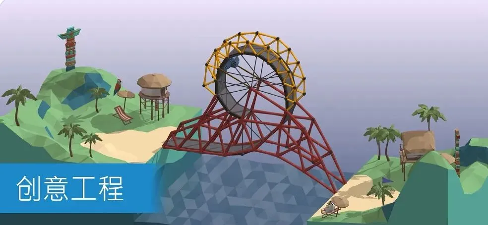 更有趣的是,游戏从不限制你的创意边界。你不必拘泥于现实中的桥梁结构,无论是利用杠杆原理让车辆 “飞” 过对岸的投石车桥,还是靠惯性完成跳跃的过山车桥,只要能让车辆抵达终点,就是合格的设计。这种 “实用主义” 的判定标准,让游戏从单纯的工程模拟,变成了充满趣味的创意实验场。