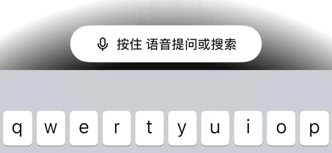 另外,搜索界面也在灰度测试全新交互,新增“搜索”标题居中的“按住 语音提问或搜索”。