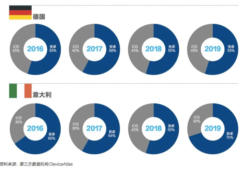 与此同时,安卓的市占率将从2019年的84.5%,将微幅下滑至2020年的82.9%,2021年持续下滑至81.1%,2022年为79.6%,开始进入7字头。而iOS在此期间,市占率约维持在13%左右。