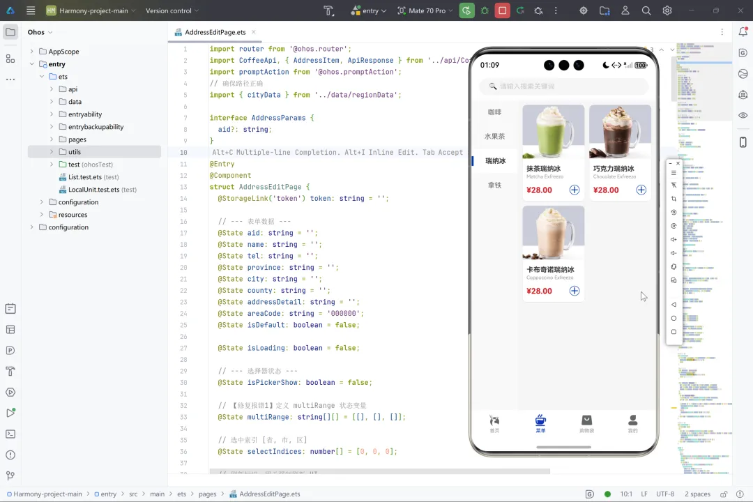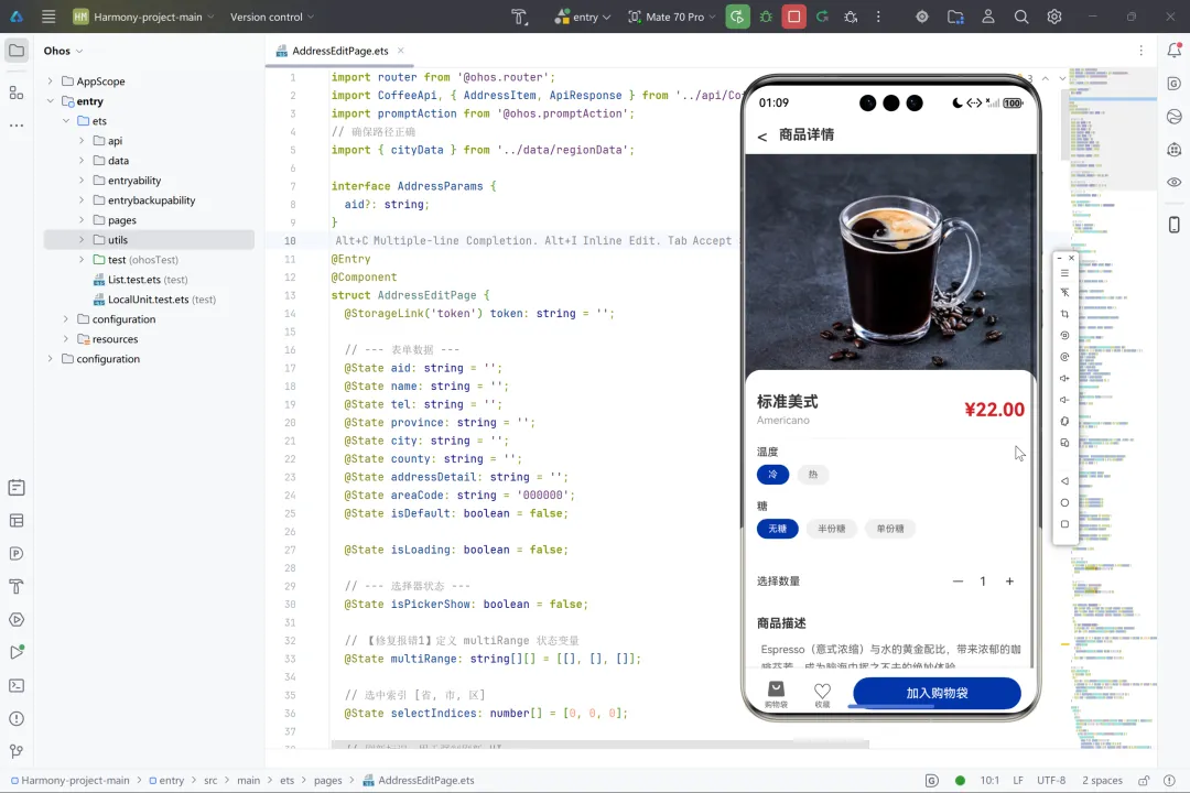 数据展示方面,结合ForEach循环渲染指令动态生成商品列表,并配合条件渲染指令控制不同状态的UI显示。交互层面,通过手势事件绑定实现分类切换和商品点击跳转,并利用路由模块实现页面间的无缝导航。此外,还运用了资源引用机制管理图片与文本资源,确保多设备适配与性能优化。