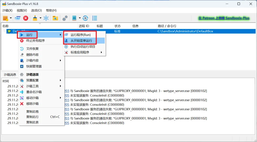 使用起来特别简单:右键选中沙盒后,可以选择"运行程序"或者"从开始菜单运行",想用什么程序直接在沙盒里启动就行。