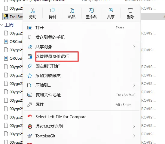 4、右键点击刚才下载的TrollRestore(1).exe,管理员权限运行