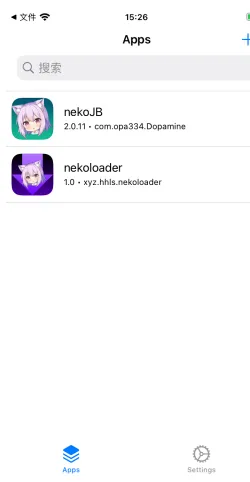 10、下载完成后,依次用巨魔打开安装,会得到两个app ,是个可爱的兔耳头像小姐姐,一个叫nokejb,一个叫nekoloader