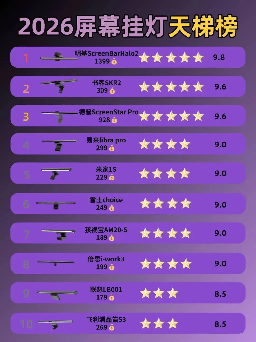 电脑游戏外设有什么?电脑游戏外设是游戏玩家的外部必备设备统称,下面给大家推荐一些不错的护眼方面的电脑游戏外设:书客SKR2、米家1S、Yeelight libra pro、孩视宝AC20-S、联想LB001、VENIDER、明基ScreenBar Halo2、德普智能屏幕挂灯、飞利浦轩笛、徕美视D015