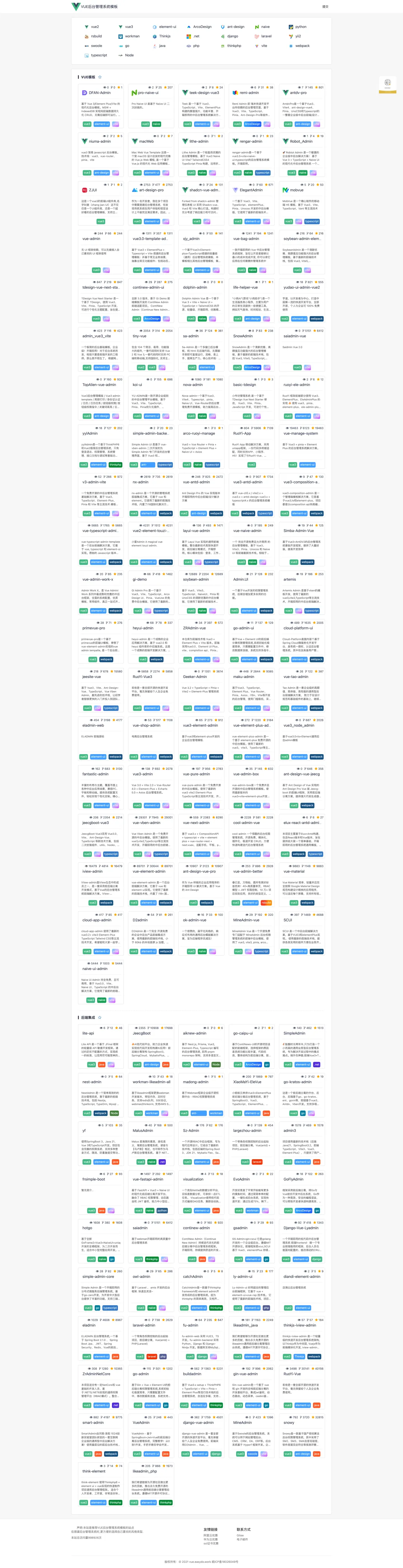 这个网站收集了很多vue后台管理系统,包含vue 2和vue 3的项目,非常适合用于练手。