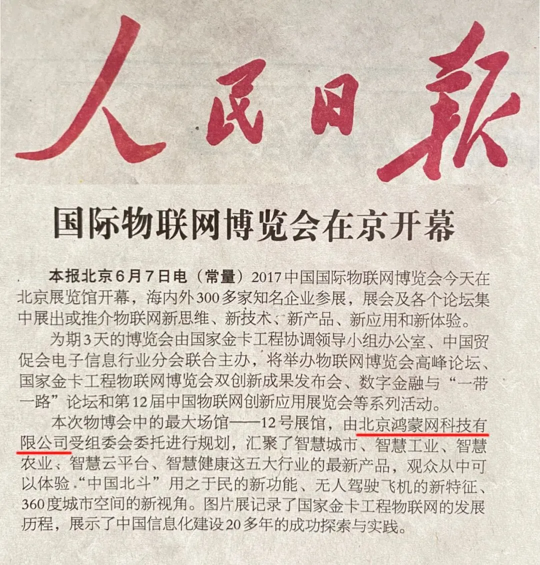 鸿蒙公司承办部分中国国际物联网博览会,设计物联网在工业、农业、服务业应用方案,助力开创万物互联智能化新时代