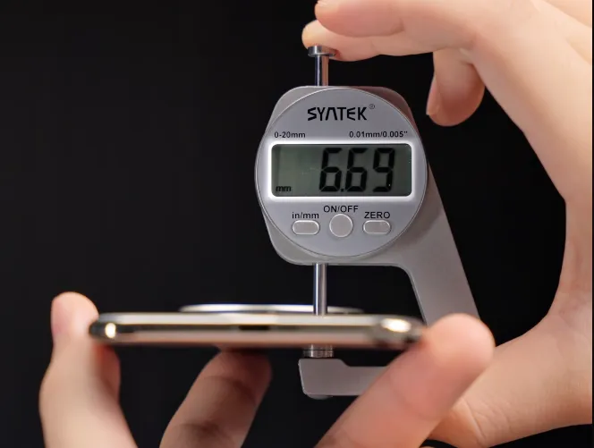 经过我们手工测量,荣耀Magic8 Pro Air机身的实测厚度为 6.58mm,而 iPhone Air 的厚度为 5.64mm。