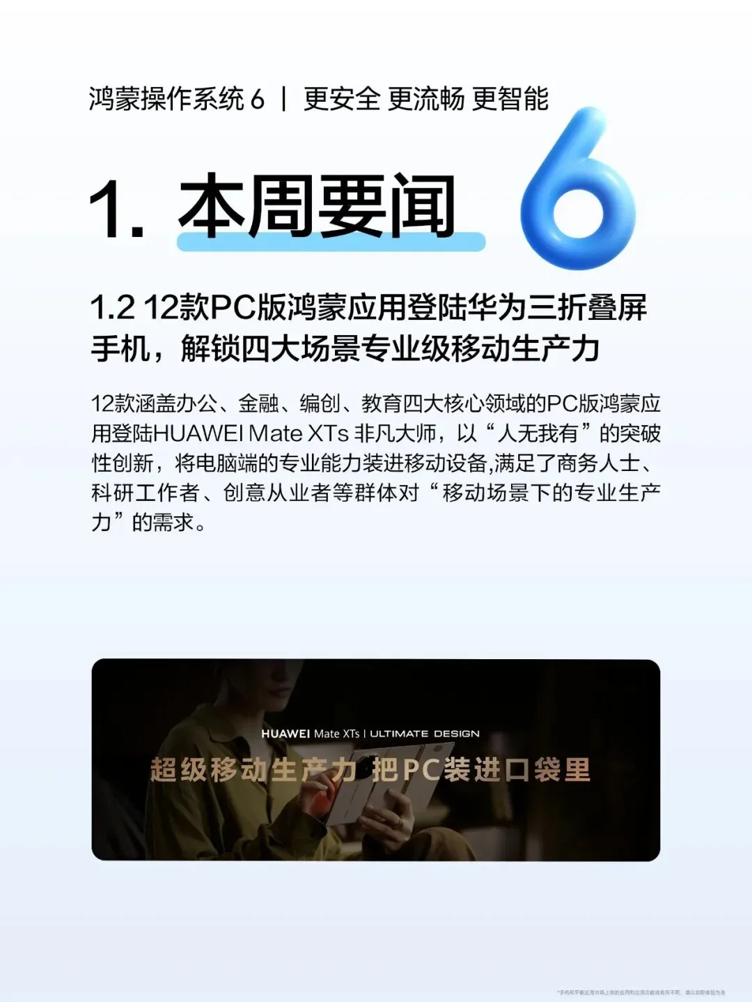 鸿蒙操作系统 6,更安全、更流畅、更智能,欢迎前往系统设置搜索“软件更新”,升级尝鲜.