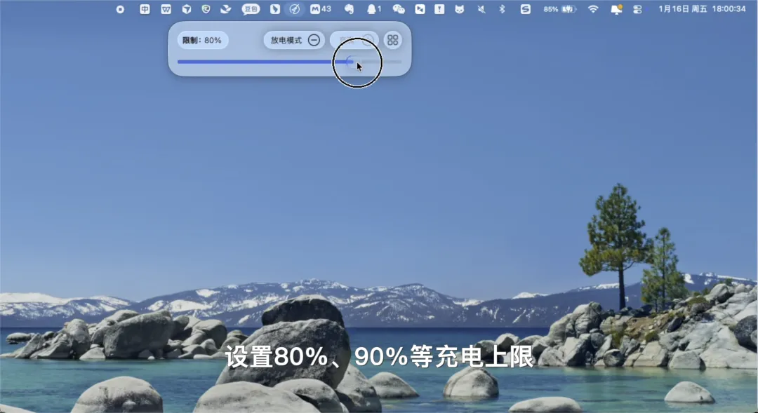 AIDente Pro是专为MacBook设计的电池健康管理工具,堪称“电池守护神”,它最核心的功能是自定义充电阈值,用户可根据使用场景设置80%、90%等充电上限,从根源上避免过充对电池的损伤。针对长期插电办公的用户,它支持通电放电模式,无需拔掉电源即可切换为电池供电,保持电池活性。比如我每天办公的时候都是一直插着笔记本,会将充电上限设置为80%。安全防护方面,具备智能过热保护功能,当设备温度过高时会自动暂停充电,防止高温损坏电池与其他硬件。此外,还提供睡眠/关机自动停充、定期电池放电校准等个性化设置,帮助用户精准掌控电池状态。菜单栏的实时图标可直观显示当前供电模式、电量百分比,各项设置一键切换,操作简单便捷。
