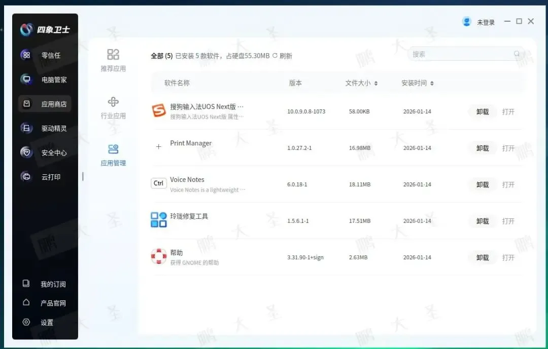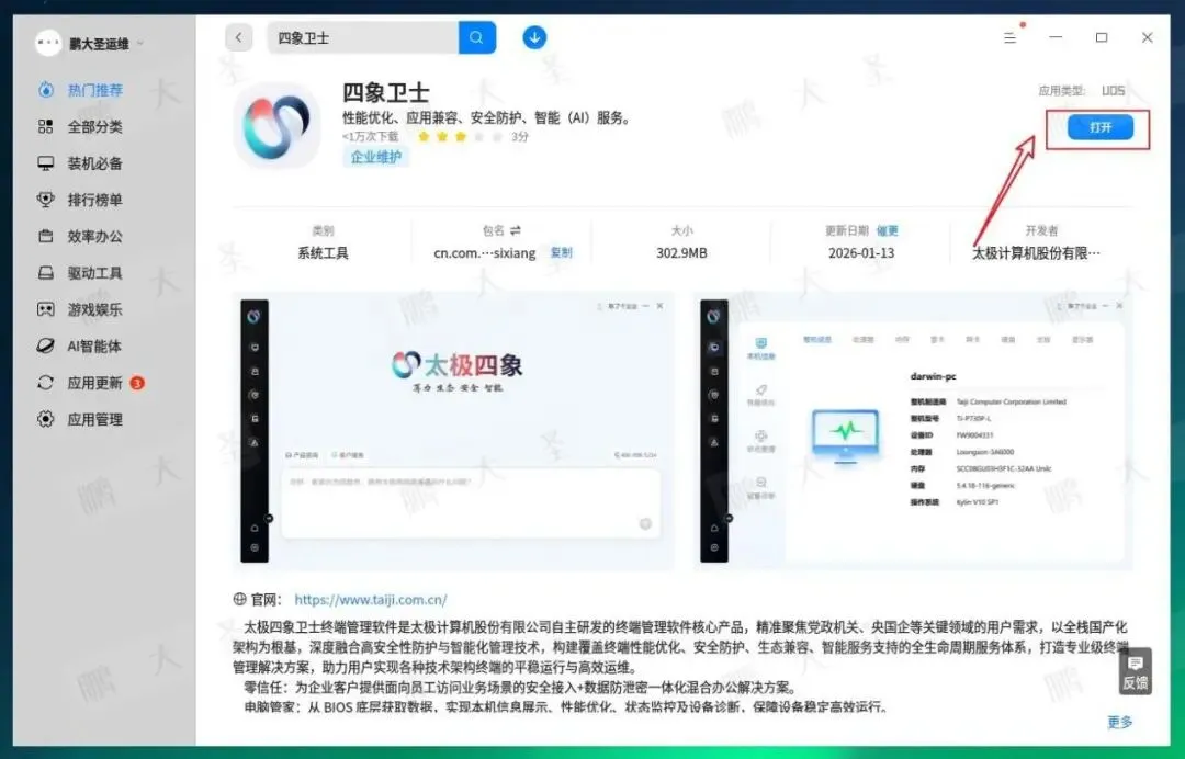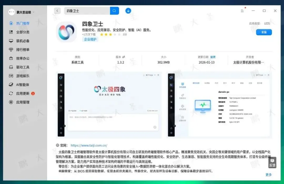也可以通过软件商店搜索“四象卫士” 进行图形化安装,适合桌面用户或对命令行不太熟悉的使用场景。