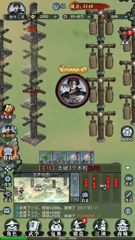 1、登陆到问逍遥游戏后开始按照主线前往挑战,采用非常简单轻松的战斗模式,只需要不断战斗就可以解锁更多的武学和技能了