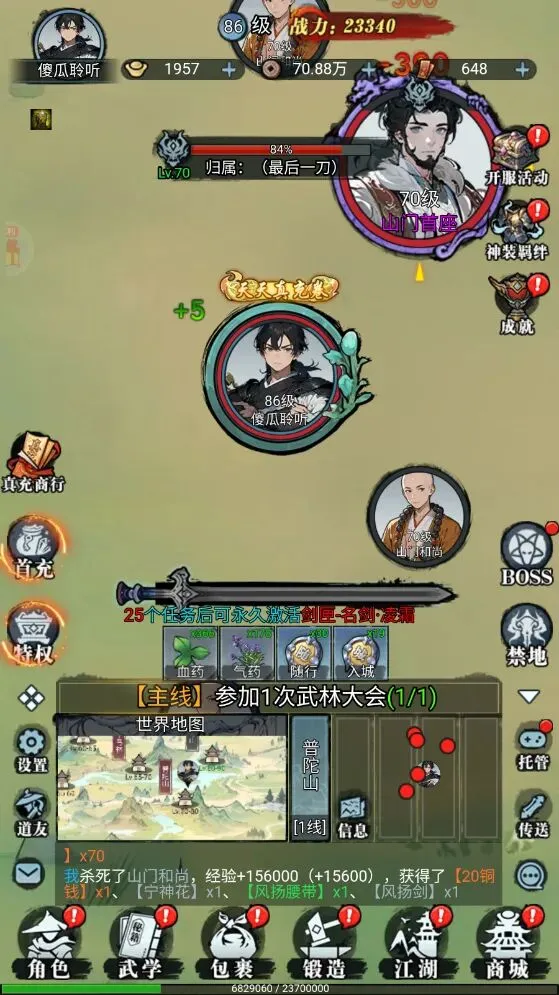3、然后就会解锁剧情BOSS和中原BOSS副本了,前往挑战不同的统领BOSS就会掉落各种极品奖励了,比如武学要诀、铜钱等