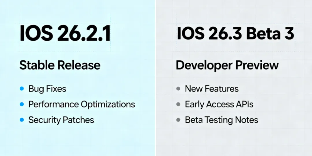 iOS 26.3 Beta 3更新和iOS 26.2.1更新即将到来,修复旧Bug的同时,会不会引入新Bug?这就是每个星期二苹果用户面临的拆盲盒体验。