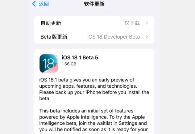 升级 iOS 18.1 beta 5 方法: