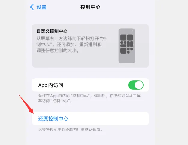 设置控制中心新增重置选项: