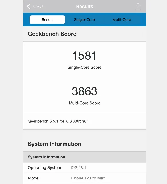 | iPhone12 Pro Max | Geekbench5 |