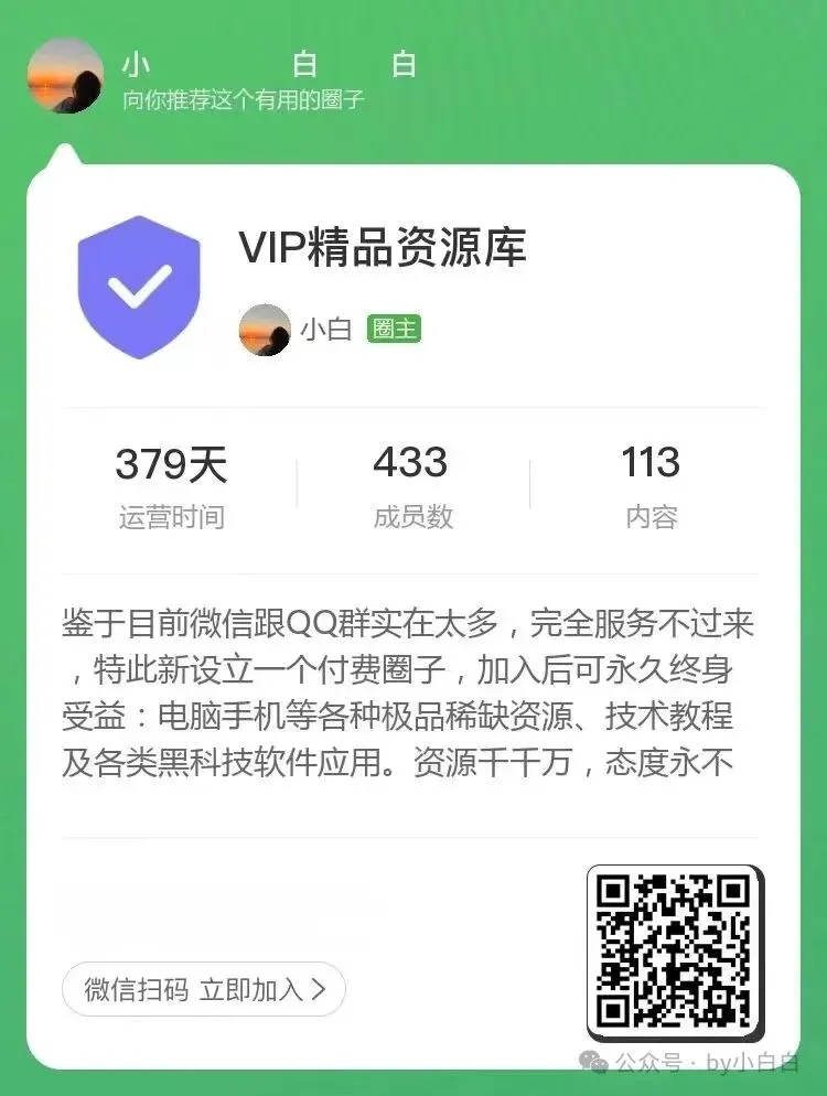 “今以后给大家一天更新一个软件吧。资源都是小白亲测过后正常才给大家分享的,确保不做无效分享。大家有需要的资源也可以在评论区留言,小白有时间都会给大家去找的。真诚恳请:大家如有安装后失效的资源,请一定麻烦及时提醒下小白,好为你们及时更新,也删掉网盘里无效的资源。之前夸克盘被封了,好无奈。还好咱还有迅雷盘,以后如有一端被封,大家可以去用另一个网盘。