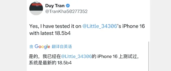目前已经确定 iOS 18.5 beta 4 和 18.2 beta 2 系统测试没问题,我认为此方法大概率支持 iOS 17.0 至 18.5 系统。