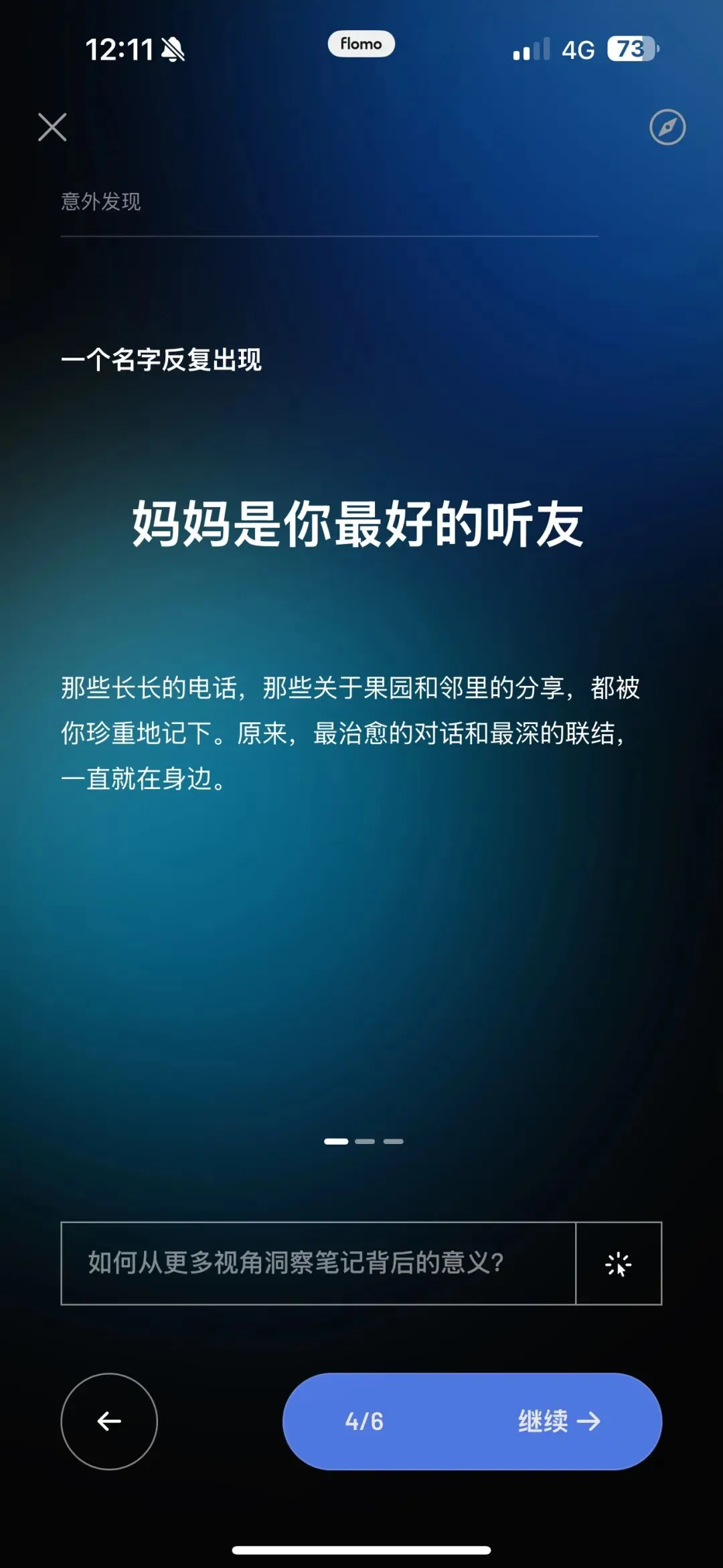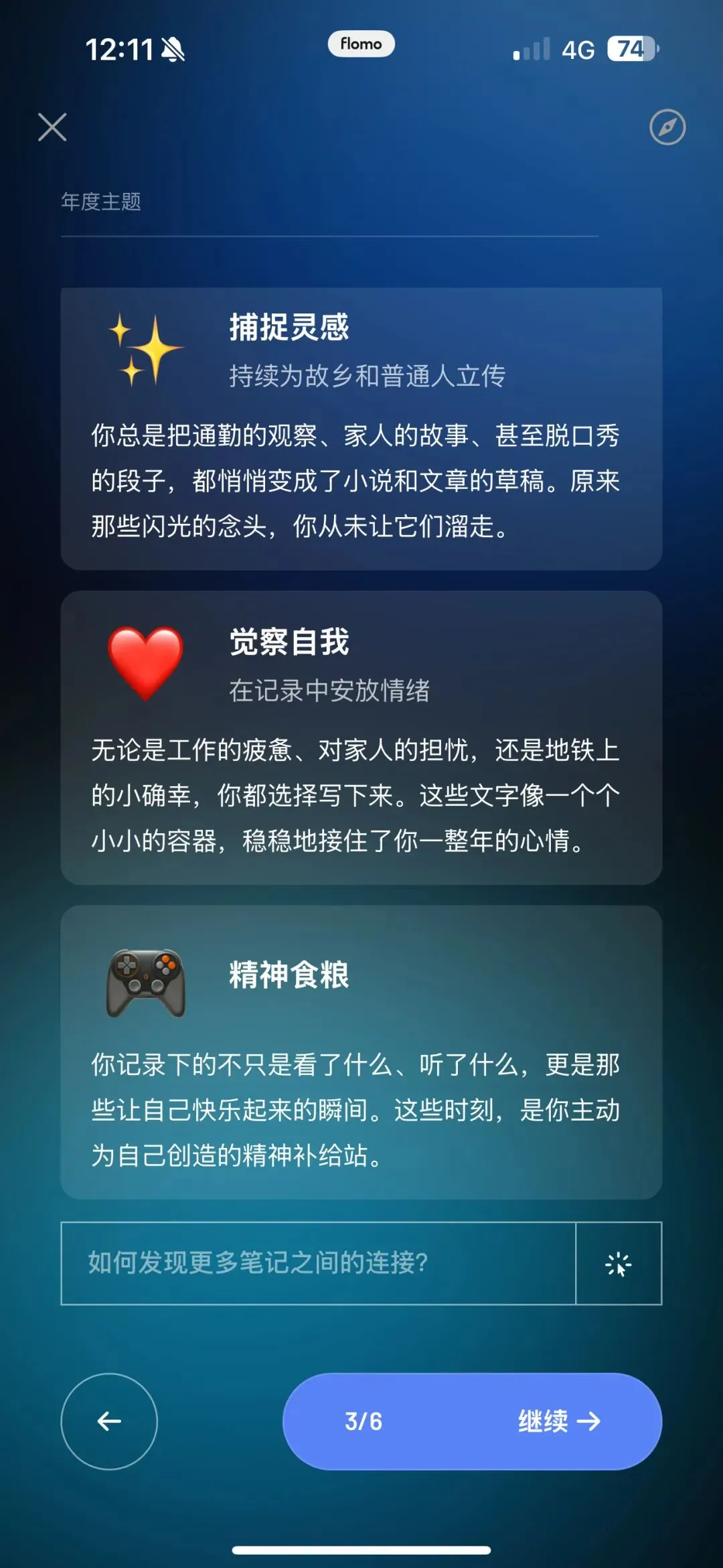 用了flomo一段时间后,我渐渐理解,它为什么说自己是“效能工具”而非“效率工具”。它不急着帮你更快完成任务,而是希望帮你更了解自己。