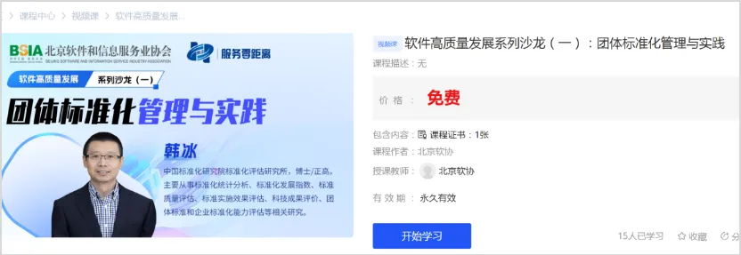 软件人才继续教育平台(以下简称“平台”)是北京软件和信息服务业协会依托市人社局北京市专业技术人员继续教育平台和市网信办北京市全民数字素养与技能培训基地打造的专业性的人才教育平台。平台为会员提供在线学习、个性选课、证书查询等一体化人才继续教育培训服务。涵盖知识产权、项目管理、人力法务、财税政策、数字技术、金融科技等10余个课程系列。
