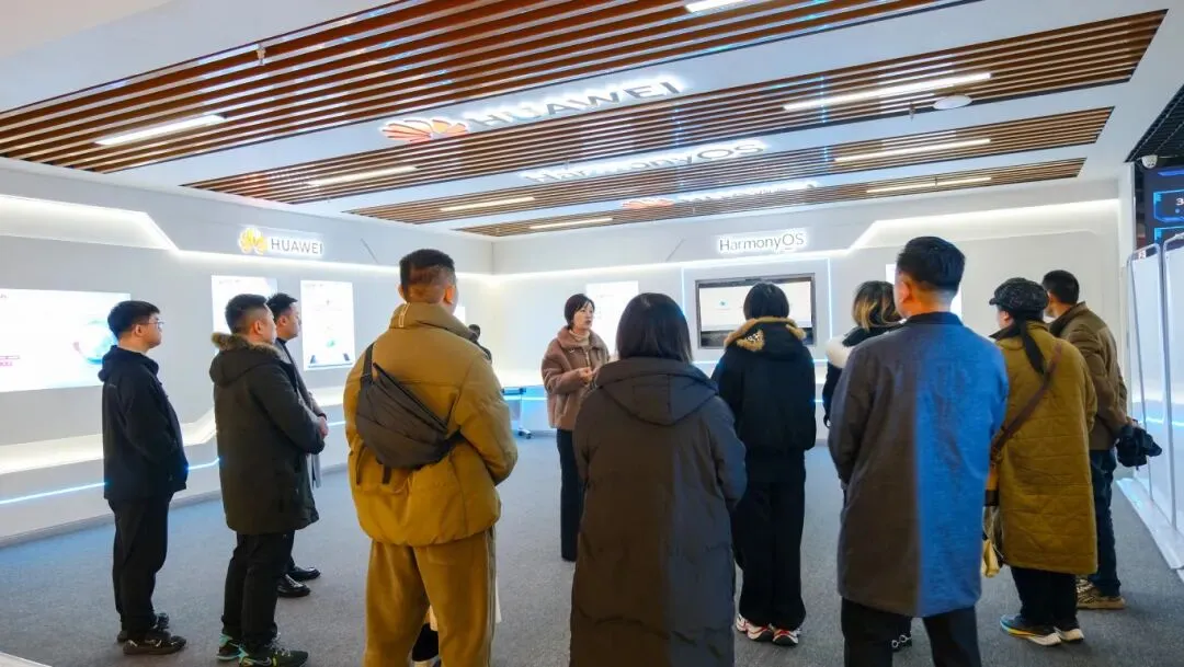 活动伊始,学员们在商务部秘书长李春花女士的引导下参观了辉烨集团大楼。数字化展示中心、鸿蒙实训基地和独具特色的企业文化墙,让学员们亲身感受到未来可能身处的职业场景。